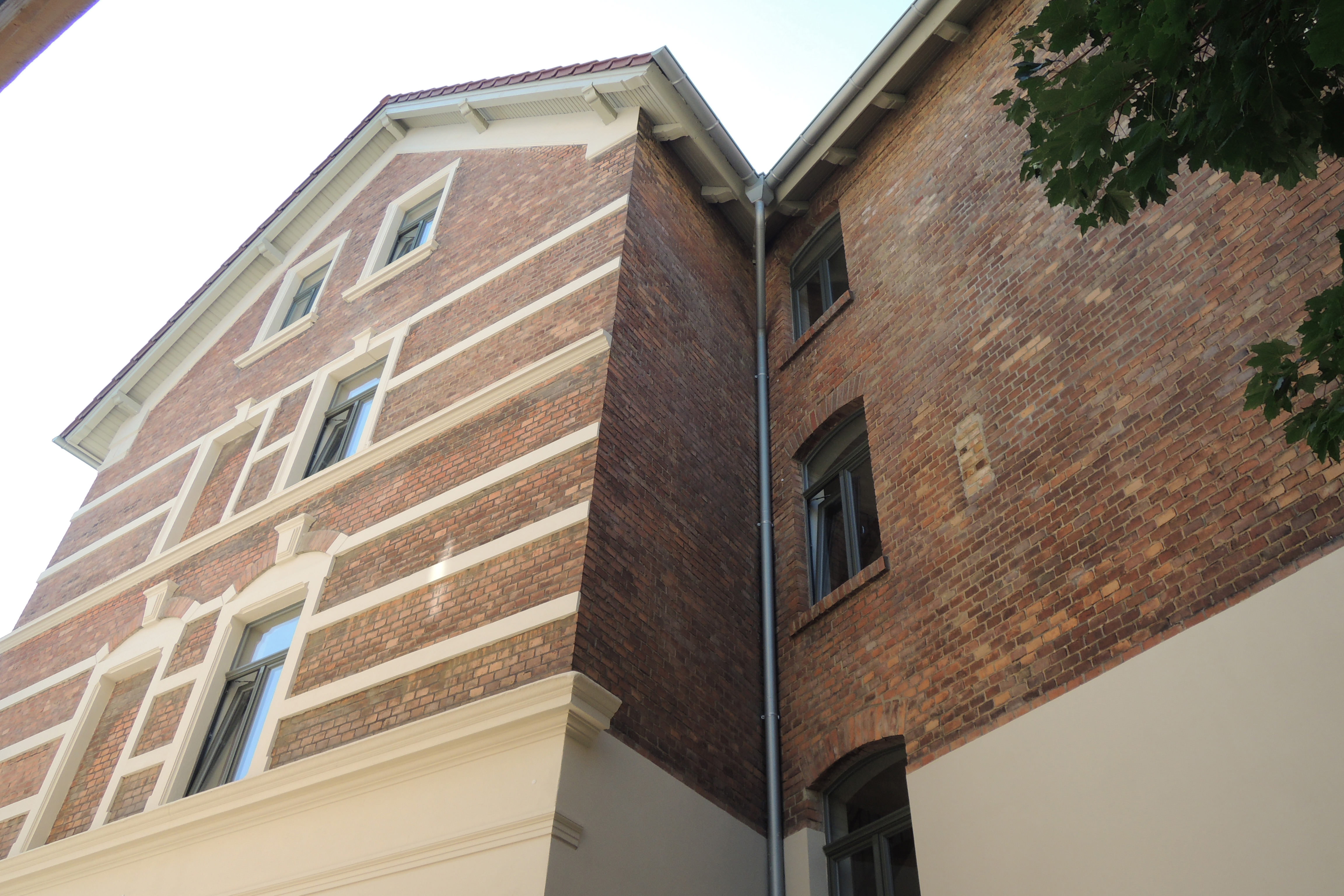 Das seit längerer Zeit unbewohnte Gründerzeithaus wird saniert und erhält ein neues Dach mit markantem Dacherker. Der überhöhte Spitzgiebel betont die Gebäudeecke und lässt einen außergewöhnlichen Innenraum entstehen. Die Fassaden werden aufgearbeitet und der Charakter des Hauses somit gestärkt. Die Grundrisse werden durch geringe Eingriffe den heutigen Ansprüchen entsprechend neu gegliedert. Die zukünftige Nutzung sieht erneut Wohneinheiten auf 4 Etagen vor. Durch den Einbau von Dachgauben erhält das DG zusätzliche Wohnqualität.