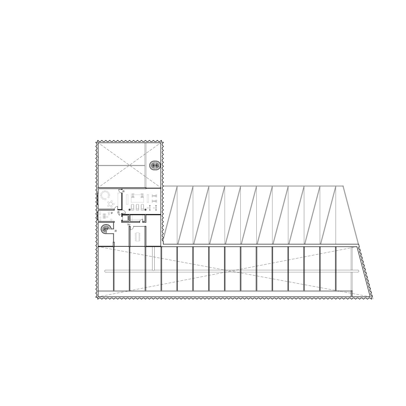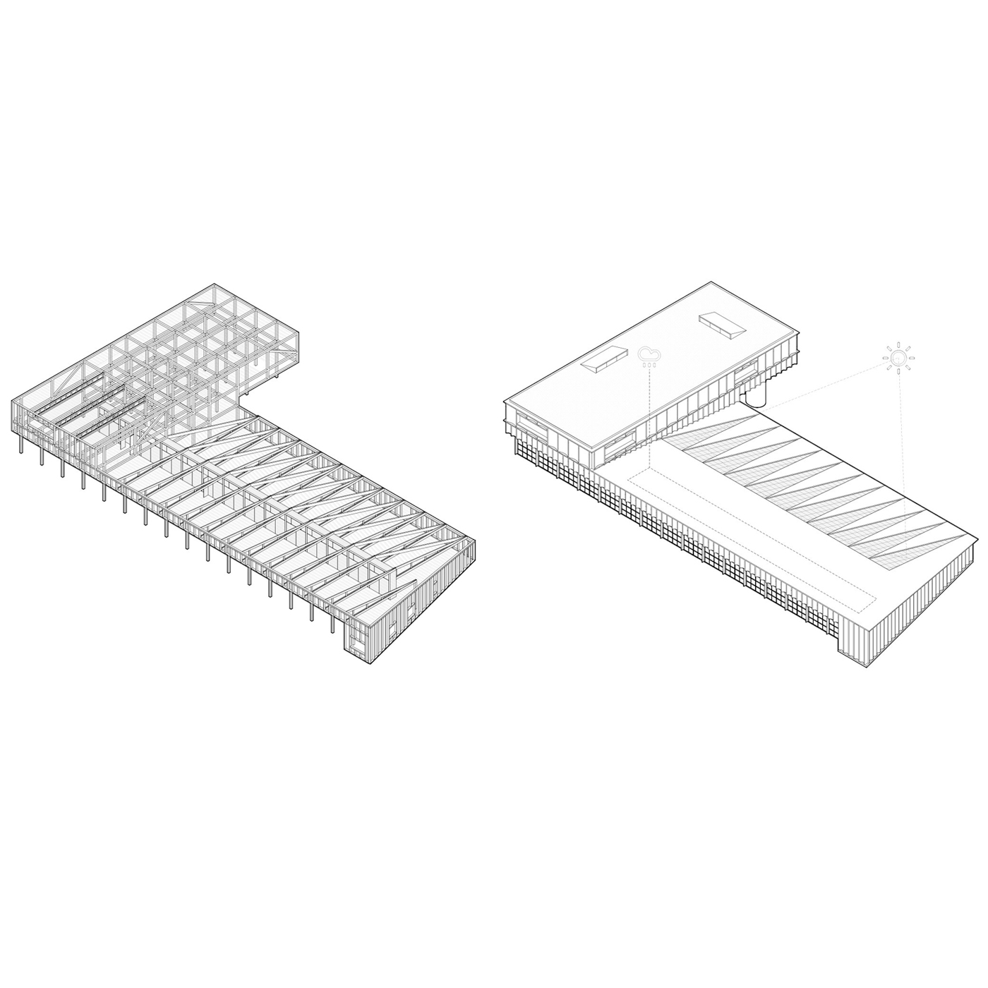 Im Falle einer Erweiterung der Fahrzeughalle um zwei Stellplätze nach Norden verspricht die gewählte Konstruktion aufgrund der zuvor erwähnten Fügungen eine leichte Anschlussmöglichkeit ohne größere Abbruch- bzw. Umbaumaßnahmen im Rohbau.