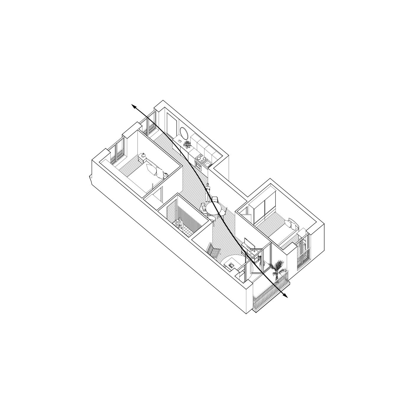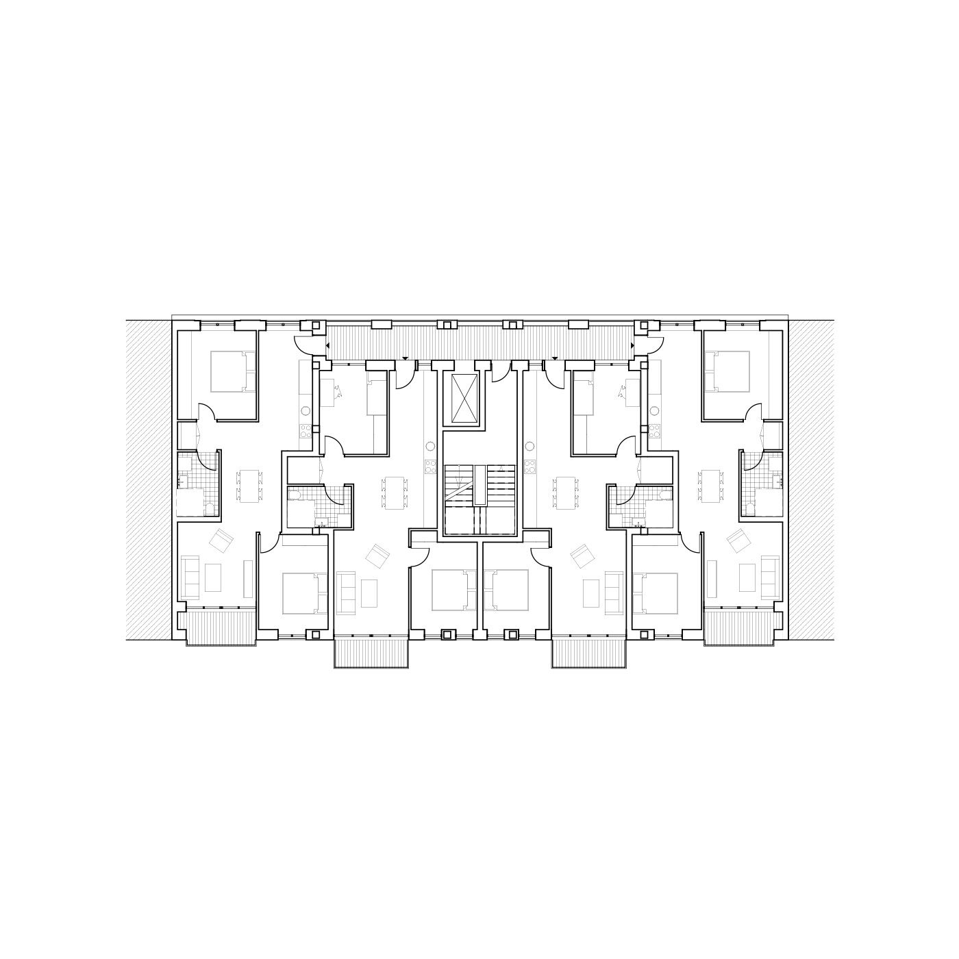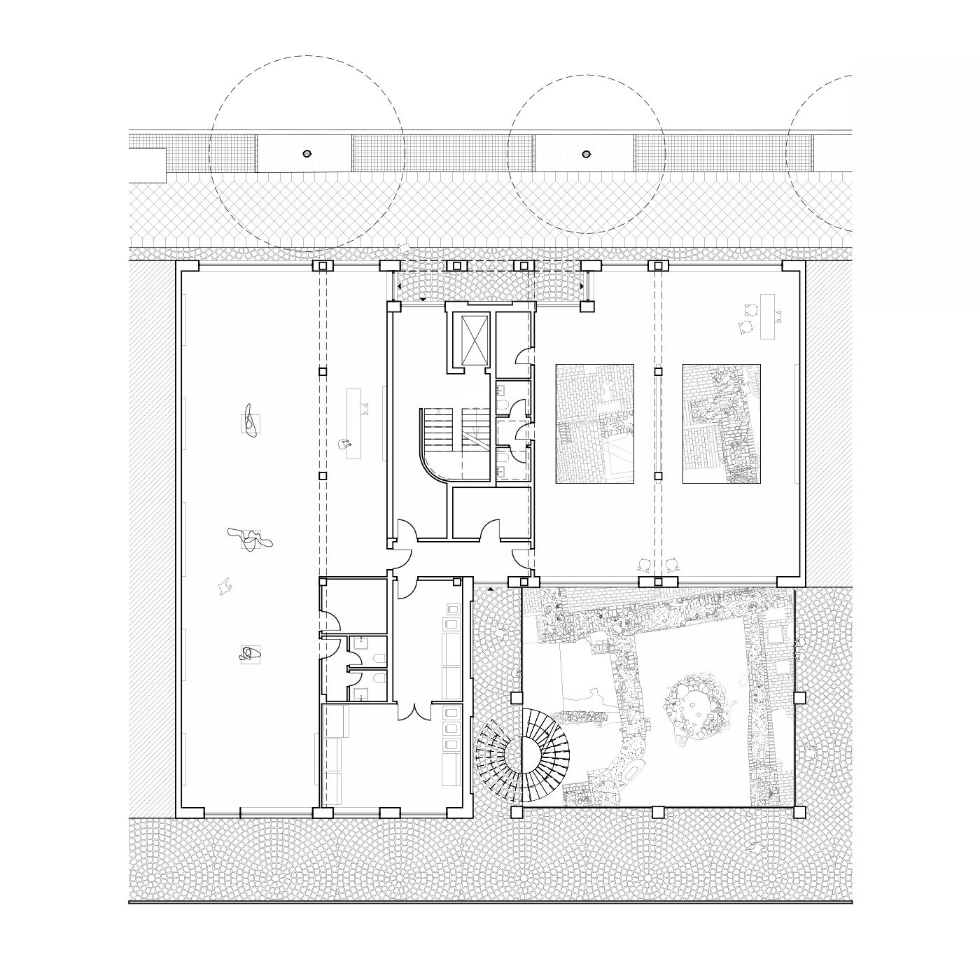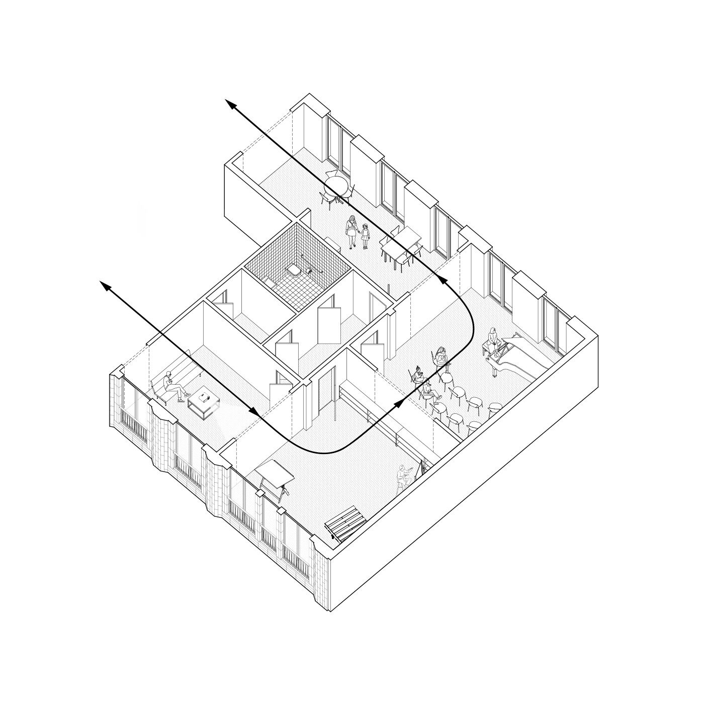 Der Neubau wird entsprechend der Lage als Mittelhaus in der Blockrandbebauung an der Breiten Straße als städtisches Wohn- und Kulturhaus mit repräsentativer Straßenfassade und informeller Hoffassade geplant. Eine eingeschossige Hofbebauung ermöglicht eine Vergrößerung der Gewerbeflächen, die Integration der archäologischen Funde sowie die Nutzung des Dachgartens als losübergreifende Spielplatz- und Aufenthaltsfläche für die Bewohner*innen. Um das Gebäudevolumen in die Maßstäblichkeit typischer Berliner Stadthäuser zu bringen, werden altbekannte Elemente städtischer Häuser integriert und neu interpretiert.