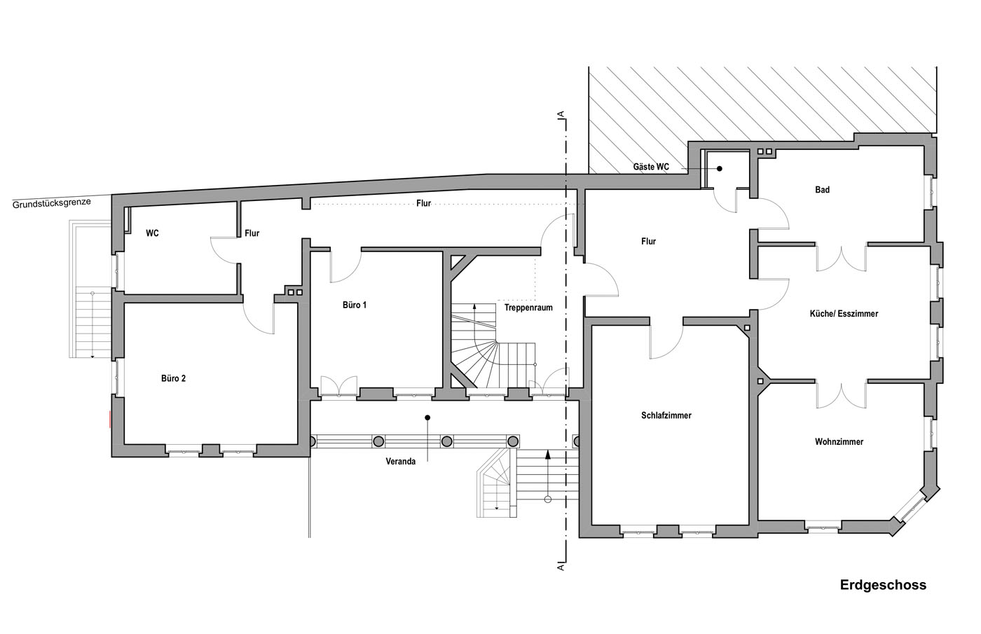 Ein ehemaliges Institutsgebäude der TU Braunschweig wird in zurückhaltender Art zu einem Bürogebäude umgebaut. Die ursprüngliche Grundrissanordnung mit Enfilade wurde wiederhergestellt. Das Dach wird erneuert und die Fassade bautechnisch überarbeitet und gereinigt. Im Inneren werden die Um- und Ausbauten aus den verschiedenen Zeiten saniert. Diese Eingriffe bleiben aber bewusst sichtbar. Gestärkt wird das Konzept durch eine indivuduell auf die Räume abgestimmte Farbgestaltung in Zusammenarbeit mit Friederike Tebbe, studio farbarchiv Berlin.