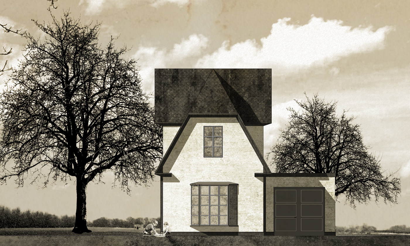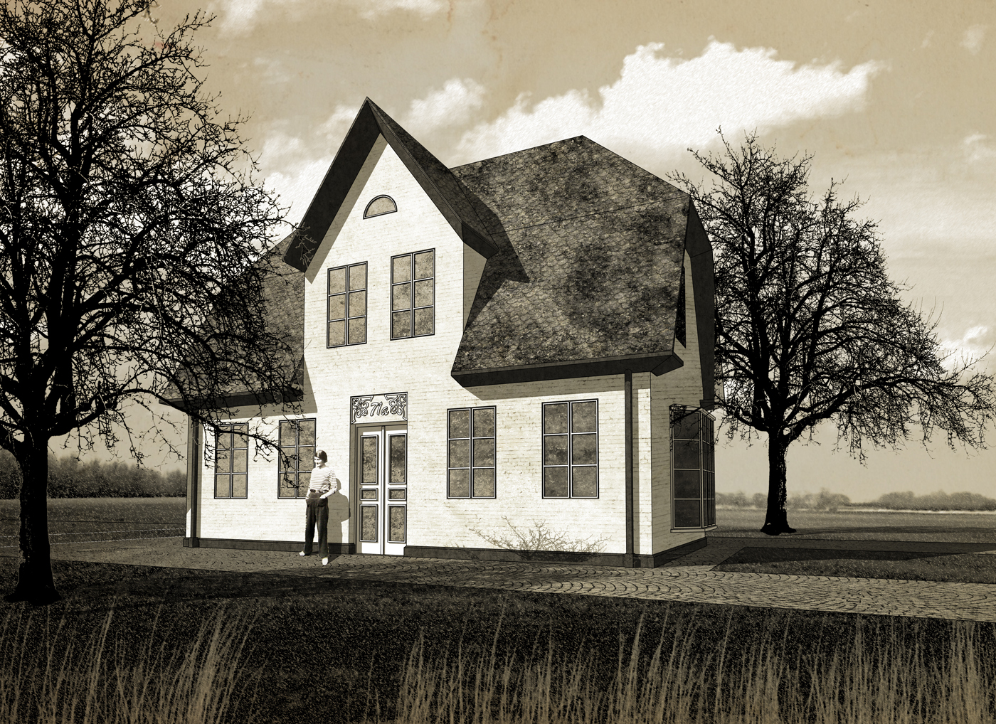 Entwurf eines Einfamilienhauses für einen privaten Bauherren auf Sylt. Das Haus orientiert sich von Fassadentypologie und Kubatur an den klassischen Friesenhäusern auf Sylt. Da auf dem Grundstück aus Brandschutzbestimmungen und gestalterischen Gründen keine Reetdeckung angebracht ist, werden die Trauf-, Ortgang und Sturzdetails modern interpretiert und in Betonfertigteilen ausgeführt.